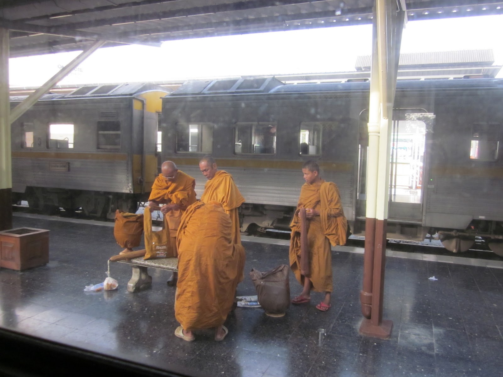 We got up early, packed, said our good-byes to Ron & Min and caught a red taxi (don't think car, think seats in the back of a pick up truck with a roof) to the train station. It was only about a 10 minute ride and it was a cool morning. We lamented the fact that we were headed south and to the heat. As much as we enjoyed Chiang Mai, we were ready to move on.